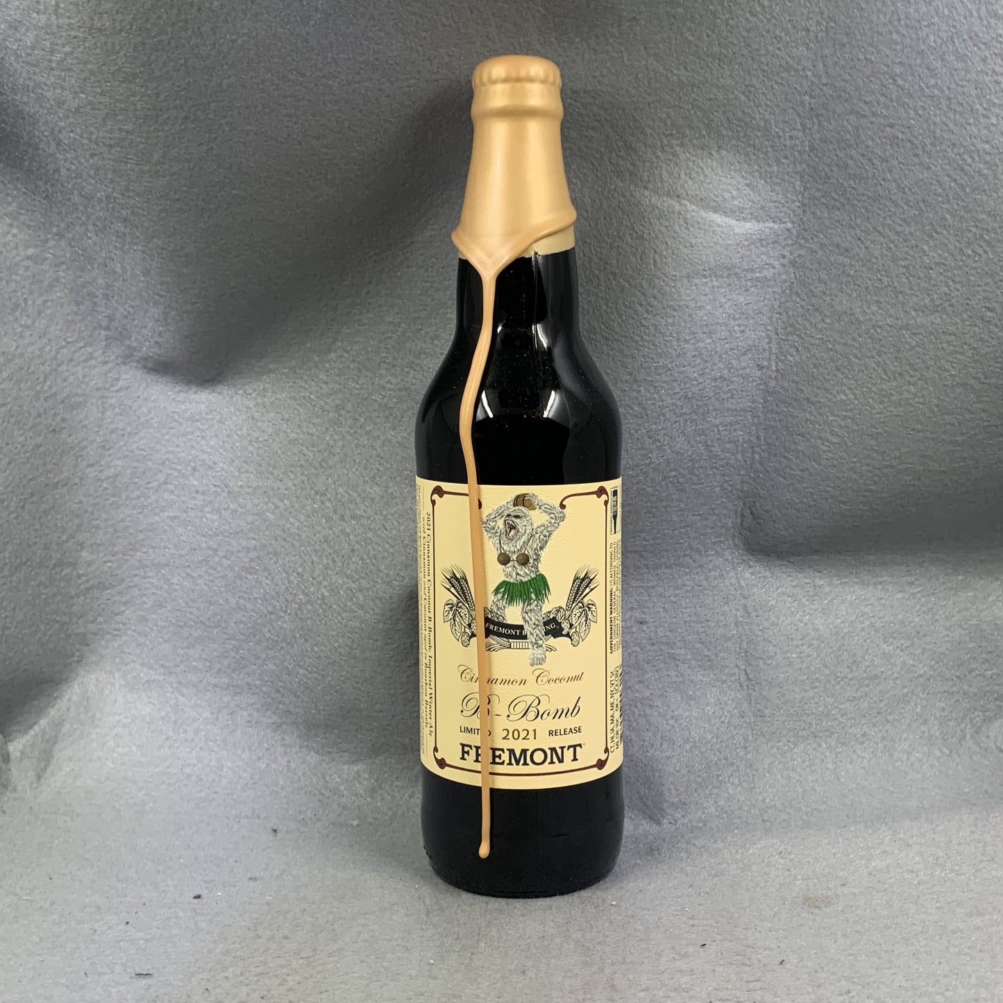 This year’s release of B-Bomb is aged in 8–12-year-old American Oak bourbon barrels and is a blend of 9, 12, and 24-month old barrel-aged Winter Ale. This special edition adds cinnamon and toasted coconut to complement the oak, cacao, leather, toffee, and dark coffee notes achieved from its extended barrel aging and barrel blending. Each barrel contributes a different note, and combining each barrel to create a coherent tone is a distinct art and true pleasure. Please do enjoy this unique barrel-aged ale today but know that Cinnamon Coconut B-Bomb will age gracefully for years to come. Don’t Be Afraid To Be Abominable.